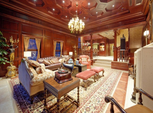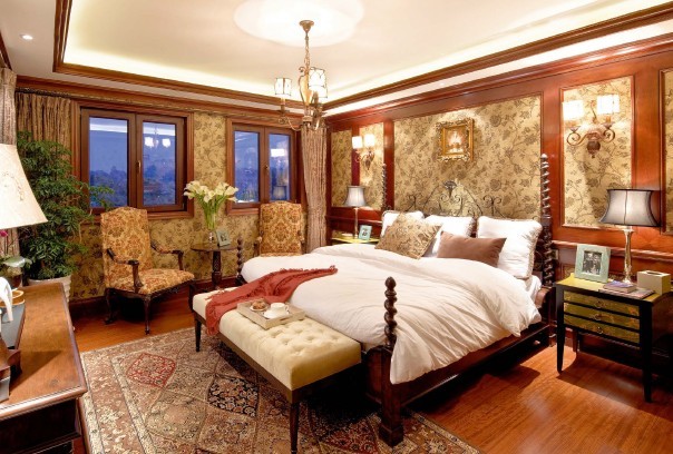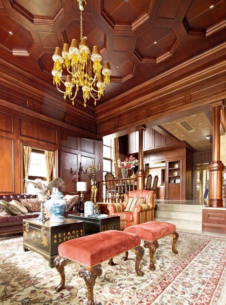 本案中,做舊的紅褐色木飾面板成為這個(gè)空間的主基調(diào),配上古典的木制家具,將高貴典雅的英倫風(fēng)格展現(xiàn)得非常完美。英倫的田園氣息與貴族氣質(zhì),也將主人的生活演繹得更加精彩,在奢華的高潮中表述著低調(diào)的精彩。