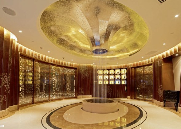 用最凝練的色彩與線條,構(gòu)筑起最簡單與華麗的生活空間,成為了如意會所藝術(shù)王國的解碼器。臺灣設(shè)計師王俊欽獨(dú)具匠心的設(shè)計給業(yè)主帶來了極大的視覺震撼,華麗如宮殿的氣勢、流暢的線條、晶瑩低調(diào)的色彩與鳥巢共舞, 與盤古七星華麗尊貴的外表天衣無縫地搭配在一起。如意會所的奢華并沒有背離人性化設(shè)計的初衷,成就了富人群體的心靈港灣。