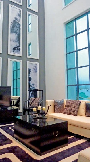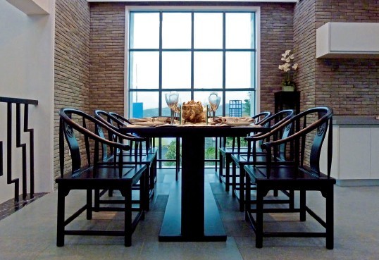 在配飾的選擇上,茶幾上具有中式文化味道的圍棋和功夫茶具,雅致而不奢華,穩(wěn)重而不沉悶。此外,傳統(tǒng)的花瓶造型用現(xiàn)代手法重新設(shè)計(jì),以現(xiàn)代私人會(huì)所設(shè)計(jì)手法表現(xiàn)水墨畫(huà)另一面的墻面裝飾畫(huà)等等,既新穎又獨(dú)特。挑高的客廳中,設(shè)計(jì)師運(yùn)用LED 節(jié)能燈取代了傳統(tǒng)別墅的吊燈,有利于減少高發(fā)熱的光源,從而減少碳的排放。