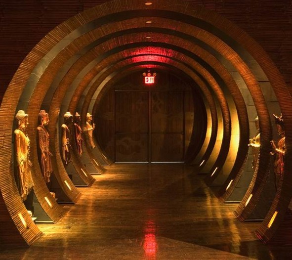 文化與當?shù)亓曀妆淮罅窟\用到整個音樂會所設計中來,拱形隧道般的入口歡迎著顧客,兩邊等距地擺放著各異的佛像,不禁讓人屏氣凝息,肅然起敬。