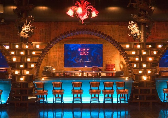 華麗的燈光背后蘊含著深厚的佛教文化,也許很所信仰佛教文化的人們會覺得這是一種不敬的表現(xiàn),而我覺得恰恰相反,尊重有很多的方法,不一定是畢恭畢敬三跪九叩,把音樂會所設計文化融入到現(xiàn)代人的生活中也正是對文化的宣揚和傳承。店內裝飾華麗,燈光昏暗卻充滿變化,富有東方氣息。