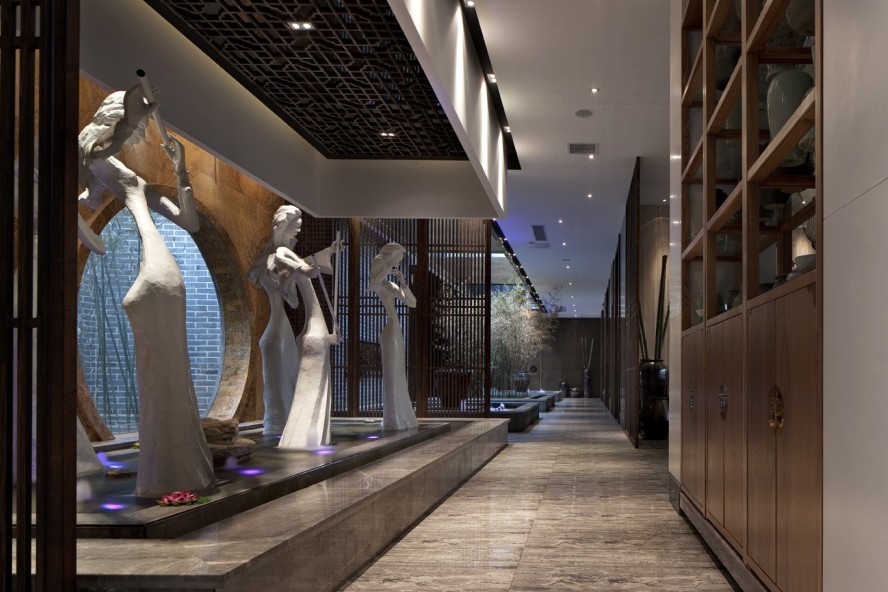 入口采用壁照的方式,生動地運用“女子十二樂坊”的元素,整個空間處理的大氣又有節(jié)奏。