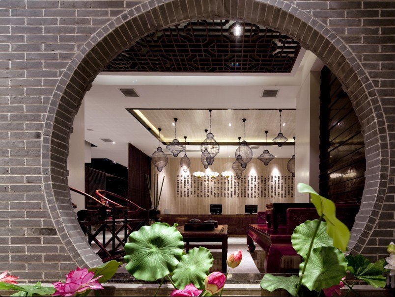項目定位于新中式風(fēng)格,是徽派文化與中式文化的完美結(jié)合,設(shè)計運用了多種表現(xiàn)形式,并借用“蘭亭序”,表現(xiàn)了本案的設(shè)計意境。外立面采用中式園林的手法,入口則用了照壁的方式,將曲徑通幽、移步換景的意境表達(dá)了出來,令顧客享受一個詩情畫意的休閑空間。