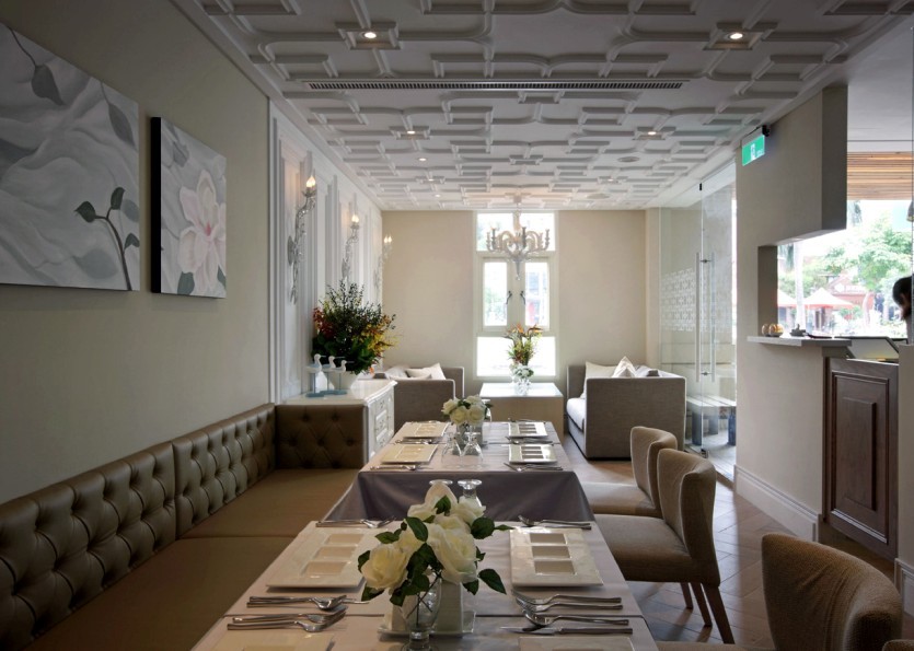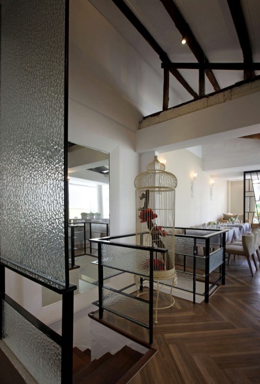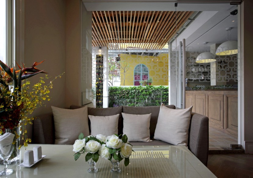 室內(nèi)置入屏風玻璃,以鏤空鐵件形式來區(qū)隔空間,演繹出當時與古典、鄉(xiāng)村田園與時尚的和諧、讓顧客感受到餐廳休閑舒適、賓至如歸的氛圍。