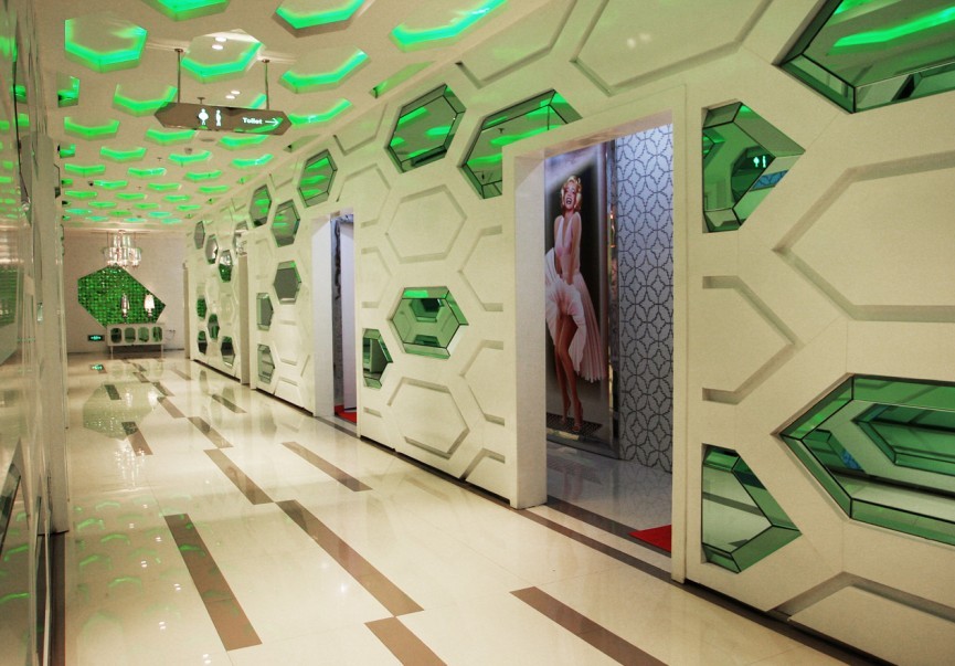 在空間布局上,結(jié)合專業(yè)量販KTV的營(yíng)銷模式,合理地分布各個(gè)功能區(qū)塊,入口的大廳被設(shè)計(jì)成一個(gè)多功能的空間,包含總臺(tái)、等候區(qū)、超市、自助視聽區(qū)。設(shè)計(jì)重點(diǎn)被置于各個(gè)包房,會(huì)所設(shè)計(jì)公司以年輕群體的不同個(gè)性喜好,將包房做了多元化的設(shè)計(jì),10余種不同風(fēng)格,增添了設(shè)計(jì)的多元性和趣味性。