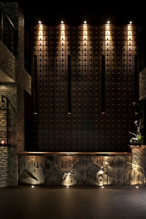 會(huì)所設(shè)計(jì)公司在內(nèi)部空間設(shè)定大量實(shí)木格柵與情境光源,視覺上融入處處可見的古玩書柜墻、大紅色喜氣洋洋的鳥籠燈飾、形成空間天井并串聯(lián)上下兩個(gè)樓層的水景設(shè)計(jì),處處皆有景。多處墻面裝飾運(yùn)用漸層玻璃與噴繪手法,透過暈染醞釀獨(dú)特的“光迷幻”效果,柔軟而忠實(shí)地傳達(dá)水墨書法與人文書香。整體以層次萬千的情境鋪陳與燈光布局,透過多種自然材質(zhì)與高難度工法,精致的呈現(xiàn)帶來更具深度的享受。