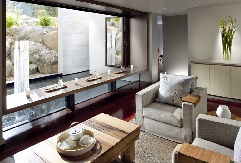 表達(dá)自然度假情調(diào)現(xiàn)代風(fēng)格包括了自然與簡(jiǎn)約風(fēng)格,它正逐漸成為時(shí)下地域性建筑設(shè)計(jì)的主流,以它特有的自然風(fēng)情,贏得了 人們的向往。度假會(huì)所里的現(xiàn)代風(fēng)格主要結(jié)合了各國(guó)的地域性特征,將各地的特有的風(fēng)情引入到會(huì)所建筑的 每個(gè)細(xì)節(jié)中,體現(xiàn)了每個(gè)人對(duì)環(huán)境的向往。如澳大利亞塔斯馬尼亞島saffie度假會(huì)所,從當(dāng)?shù)刈匀痪坝^中借 鑒色彩,運(yùn)用到整個(gè)會(huì)所設(shè)計(jì)中,以期喚起人們對(duì)沿海地貌、沙丘、海洋的記憶,實(shí)現(xiàn)了水與建筑的和諧交融。這樣的設(shè)計(jì)擅于從周邊環(huán)境中汲取靈感讓度假會(huì)所更加親近自然,使人們暢享自然浴人文的雙重體驗(yàn)。