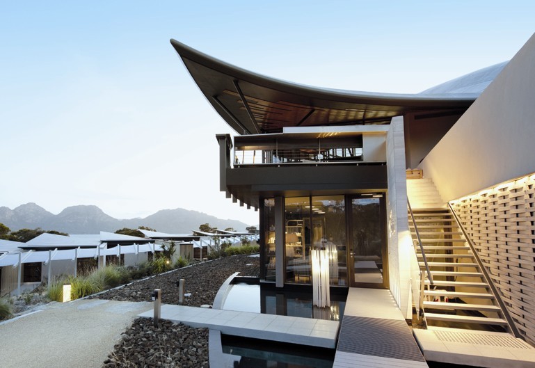 私人會所的設(shè)計頗具深意,以期喚起人們對沿海岸地貌、沙丘、海洋生物和波浪的記憶。因此將私人會所的工程融入當(dāng)?shù)刈匀画h(huán)境顯得相當(dāng)重要。色彩是項目成功的一個非常關(guān)鍵的因素,從當(dāng)?shù)刈匀痪坝^借鑒來的色調(diào)被直接運用到整個私人會所設(shè)計中。在某些時候,屋頂反射出海灣的顏色,揭示了水和建筑交融的聯(lián)系。同樣地,私人會所建筑的墻壁和屏幕的顏色也暗示著它們與當(dāng)?shù)厣笆?、浮木、樹葉、樹皮等顏色有緊密的聯(lián)系。