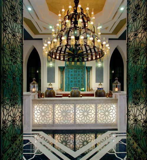 大堂主入口處的大型枝形吊燈根據(jù)傳統(tǒng)奧斯曼式樣經(jīng)過特殊處理設(shè)計而成,由伊斯蘭之星組成。其他的 枝形吊燈均利用紅色和青綠色水晶制作而成,這兩種顏色的組合在奧斯曼皇宮被廣泛運用。