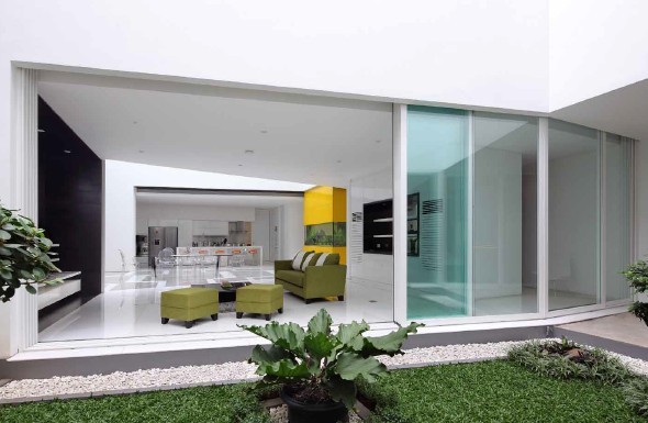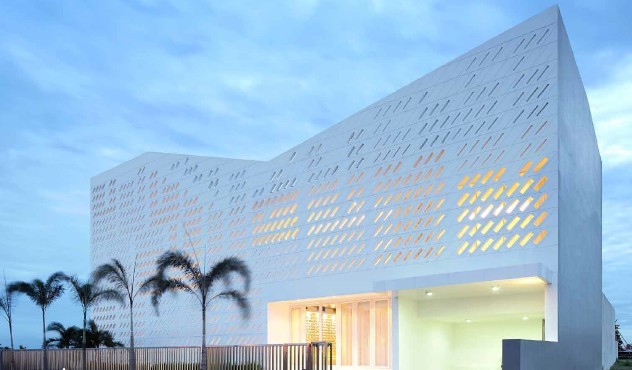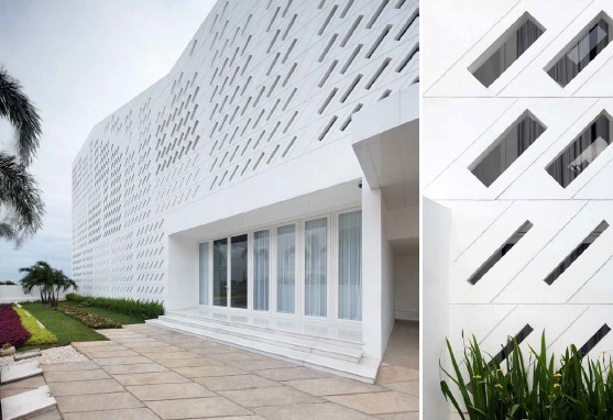 您現(xiàn)在所在的位置:首頁(yè)>會(huì)所設(shè)計(jì)>正文 該建筑在設(shè)計(jì)上既保證了各樓層的私密性,又能確保彼此間的互動(dòng)。該建筑擁有別致的外觀,西側(cè)為混凝土墻,立面多孔狀簾幕充當(dāng)了“遮擋簾”的角色,不僅可避免墻面吸收過多熱量,又可過濾陽(yáng)光。設(shè)計(jì)師賦予建筑美妙的外觀,這座別墅是21 世紀(jì)住宅建筑的典范。