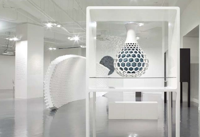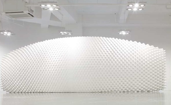 本案設(shè)計(jì)的一大重要特色是采用三維數(shù)控技術(shù)制成弧面墻體,它由數(shù)千塊磚形物體組裝而成,形成流線型固體結(jié)構(gòu)。作為杜邦可麗耐的首選平臺(tái),展廳將可麗耐實(shí)體面材在商業(yè)和住宅設(shè)計(jì)領(lǐng)域內(nèi)應(yīng)用的無(wú)限 可能淋漓盡致地展現(xiàn)出來(lái)。