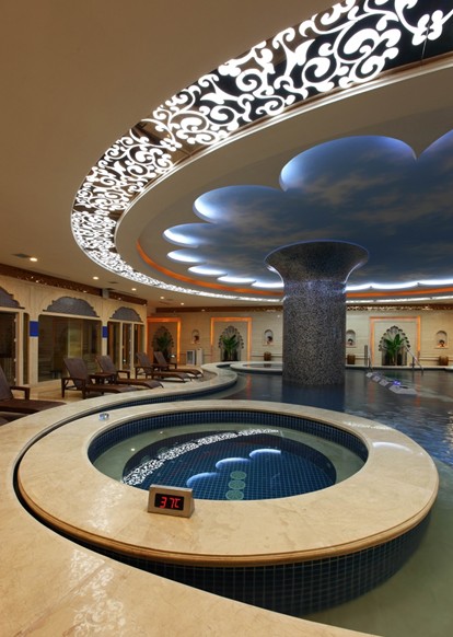?、奂揖叩募?xì)部和配件不能忽視。水療會(huì)所室內(nèi)裝飾的符號(hào)是一種視覺語言,它的大小和位置雖然很重要,但關(guān)鍵是這種符號(hào)有沒有邏輯上的關(guān)系。家具上的細(xì)部裝飾如果選擇不當(dāng) ,同樣會(huì)影響空間的整體效果,就像我們中國(guó)傳統(tǒng)服飾的“唐裝”,如果將它的紐扣做成金屬般閃閃發(fā)光,看上去就會(huì)感到很別扭。有些現(xiàn)代家具配有過多的花邊或鑲嵌一些貝殼和金 屬飾品等,雖然局部看起來很漂亮,但與整體裝修氣氛可能會(huì)格格不入。