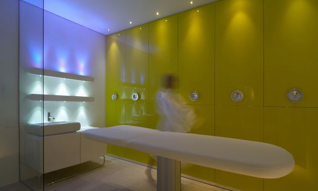 走到通道的盡頭,迎接你的是藍(lán)色的 LED 燈,而內(nèi)里正是水療中心地帶。