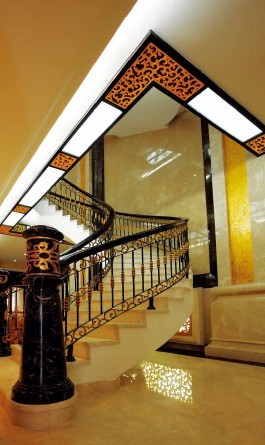 進(jìn)門玄關(guān)采用大型花梨木浮雕,木香悠悠,大氣中滲透著親和力。會(huì)所設(shè)計(jì)中空大堂大型金箔造型天花使得空間彌漫著富貴的氣息,更顯氣勢(shì)輝煌。拜祭廳設(shè)計(jì)采用了潮汕木雕及潮汕宮燈,突顯潮汕風(fēng)俗和特色。