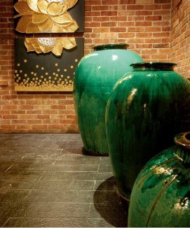 陶.SPA會(huì)所在小資情調(diào)蔓延,讓人心生愉悅的兩層樓面自然古樸與簡潔時(shí)尚完美結(jié)合拒絕了生硬的金屬感所帶來的奢華,陶罐土磚木制的扶手和整墻的佛面浮,