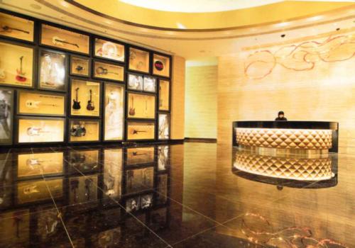 硬石酒店位于澳門新濠天地,是世界著名酒店之一。本案設(shè)計最吸引人眼球的當(dāng)是酒店設(shè)計公司出色的燈光設(shè)計。
