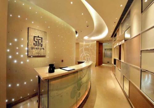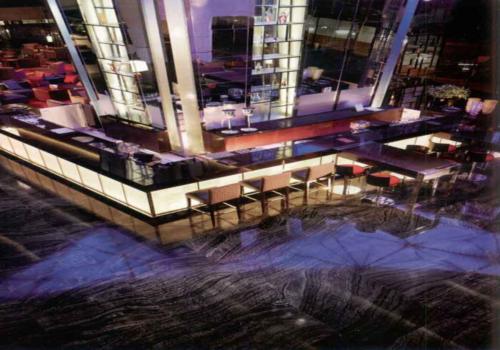 獨特的天花設(shè)計是此酒店設(shè)計的一大特色,置身于Lounge內(nèi),視線會不自覺地停留于上空獨一無二的天花設(shè)計上,天花以一系列的立體三角形狀從中間以翅膀般的姿態(tài)伸展開來,為整個空間增添生氣和活力,配以變幻的霓虹燈光,散發(fā)出寶石一樣的光芒,為這個時尚的空間增添迷人的魅力。