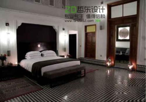 這家耗時(shí)三年半裝修的酒店隱于老城中心,如今更為漂亮:馬賽克裝飾的墻面和地板,襯以非斯典型的藍(lán)色,此外還有城內(nèi)能工巧匠創(chuàng)作的銅器、刺繡和書法作品。