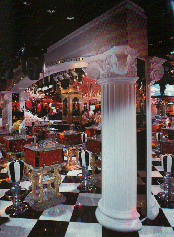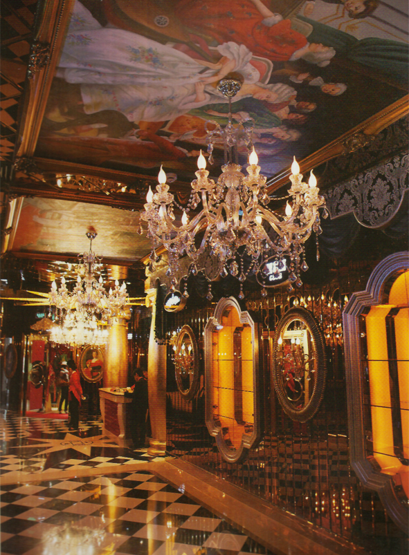 上海米格美KTV位于靜安區(qū)南京的豪華夜店將歐式宮廷特色與上海風(fēng)情完美結(jié)合。走廊構(gòu)屋頂隨處可見歐洲中世紀(jì)的復(fù)古壁畫和鏤花的玻璃窗,顯得精致而華美。大堂開闊富麗,水晶吊燈整齊密集地低垂宛如夜空中的繁星點點,地板和桌椅都以黑白色為格調(diào)使人感覺大氣而莊重。而墻壁上各色花雕與古銅邊框鏡子恰到好處地將古典元素融如時尚潮流中。