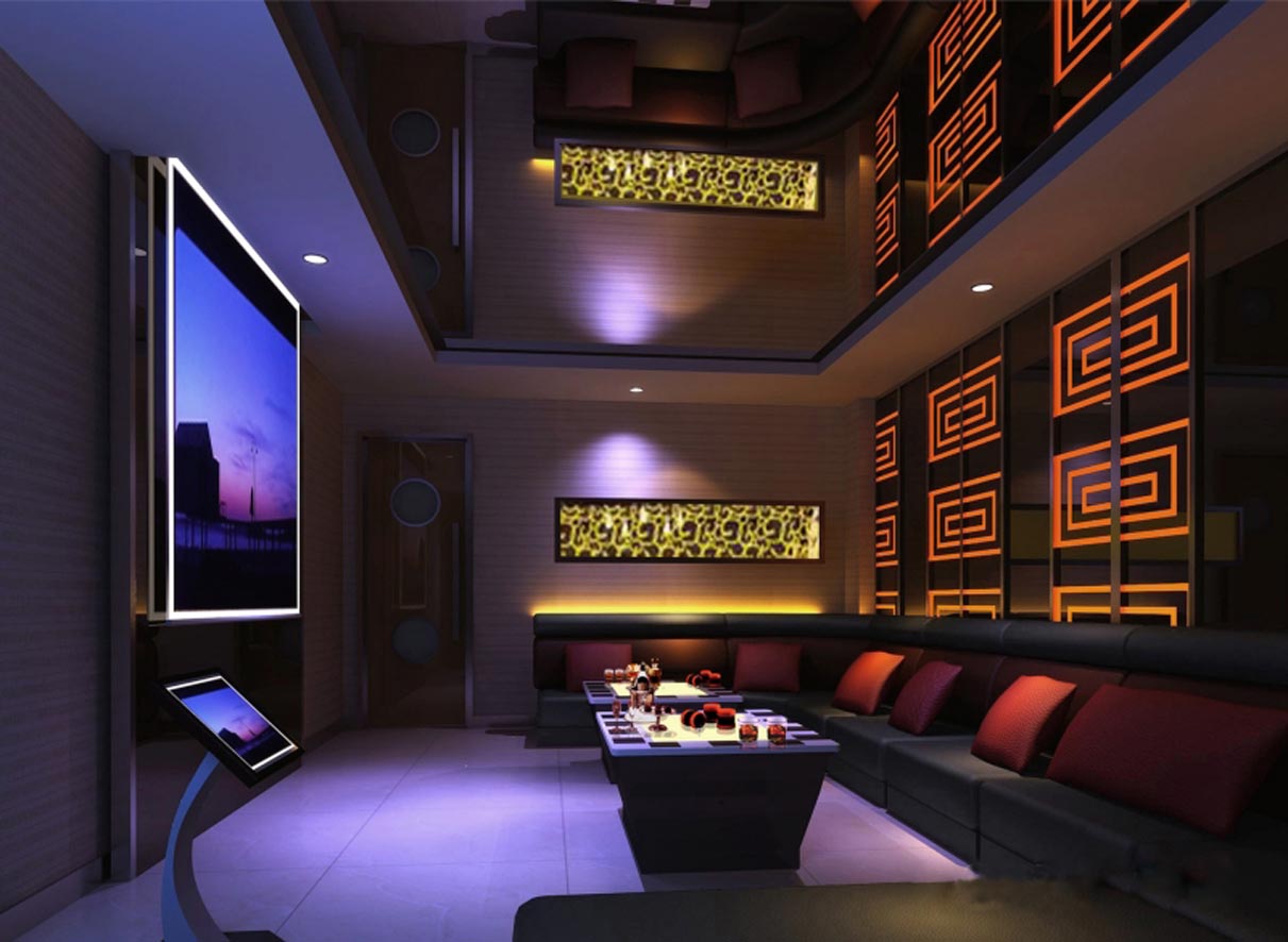 這個KTV是專門針對大學生開設的,所以裝飾設計的需要的材料成本低,降低了學生的消費,但是為了不影響美觀,又用了一些顏色和噴繪的圖案加上烤漆玻璃來體現(xiàn)完美的效果。