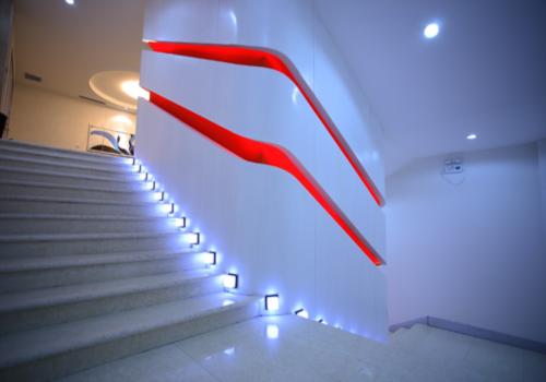 該KTV設(shè)計(jì)的特色就是,扶梯環(huán)繞直梯的“紅絲帶”,像音樂的旋律,硬質(zhì)材料在空間的應(yīng)用讓歌聲更顯清脆,明亮的色調(diào)讓空間更顯年輕,陽光和清純??臻g的純凈激發(fā)著客人的歌喉,去唱,去聽,去欣賞,欣賞歌聲,欣賞音樂,享受空間。