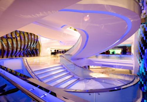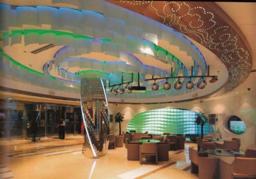 您現(xiàn)在所在的位置:首頁>Ktv設(shè)計>正文KTV大廳設(shè)計,在圓型律動的接待大廳,園廳主軸為螺旋柱體,借燈光的旋律盤旋而上,引發(fā)萬花筒原理的吊燈,由內(nèi)而外散發(fā)氣氛,同時又像水波紋一樣,碧波蕩漾,當你坐在大廳的休息區(qū)椅上時,不自覺的產(chǎn)生一種無限歡快的遐想。