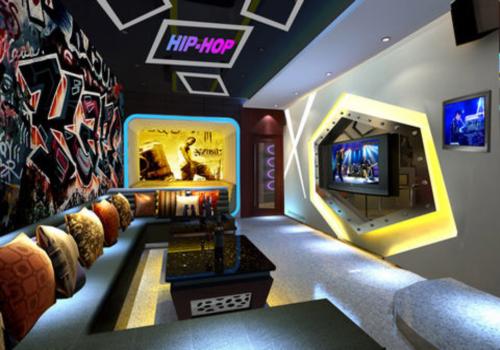 本案在材料運用上以花崗巖、玻璃、仿皮紋、墻紙、玻化磚為主。該KTV設計最大風格就是, HIP-HOP風主題包房,年輕就是無所拘束,不羈才夠high!涂鴉、搖滾、無規(guī)則等Hip-hop的元素都被運用在了包廂設計上。ktv設計公司展示HIP-HOP的精彩!