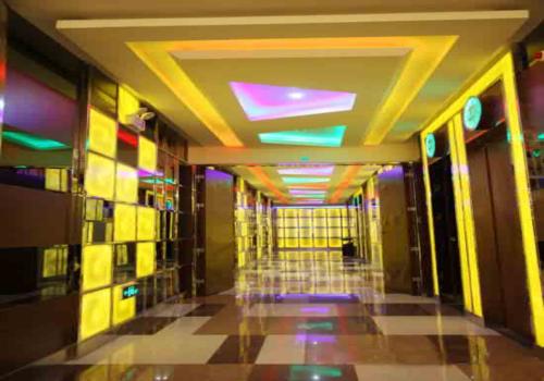 該KTV走道設(shè)計(jì)也是與眾不同,淺黃色的燈光雖然缺乏了神秘感,但是極其眨眼~~