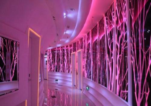 構(gòu)成KTV空間的要素必須同時(shí)具有形體、質(zhì)感、色彩等,色彩是極為重要的一方面,它會(huì)使人產(chǎn)生各種情感,比如說紅色是熱情奔放,藍(lán)色是憂郁安靜,黑色是神秘凝重。