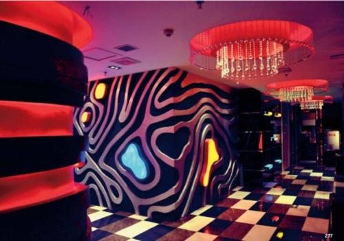 精心設(shè)計(jì)的不同紋飾,處處體現(xiàn)著人性化,讓情感在時(shí)尚中跳躍。KTV大堂設(shè)計(jì)600多米鋼管首尾相接組成傘狀的個(gè)性化吧臺(tái)氣度非凡。