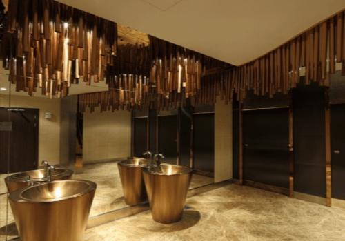 經(jīng)典的KTV設(shè)計(jì)案例,展示靈動(dòng)KTV空間。頂面的金屬線條質(zhì)感與下面潔具質(zhì)感的呼應(yīng)設(shè)計(jì)手法使空間更加協(xié)調(diào)。