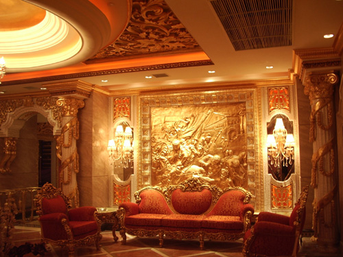 歐式古典風(fēng)格,歐式古典家具,空間設(shè)計(jì)金碧輝煌,鑲邊大紅沙發(fā)與之相配,家具點(diǎn)綴展示一個(gè)豪華空間,KTV設(shè)計(jì)效果圖,家具深化空間設(shè)計(jì)主題。