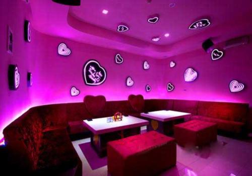 音樂之聲氧吧KTV設(shè)計以浪漫桃心等為設(shè)計元素,配合夢幻的燈光設(shè)計,讓置身其中的人不自覺得嘴角上揚、無限甜蜜。