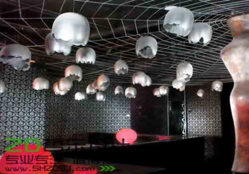 該ktv裝修人造的蛛絲網(wǎng)上懸掛著如同破碎蛋殼的飾物。人站在下面總會擔(dān)心那蛛絲網(wǎng)不夠結(jié)實(shí),但并不會真的為此擔(dān)心,這些人造的蛛絲絕對安全。