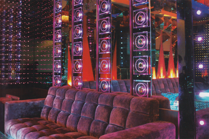 在材質(zhì)的選擇上,KTV設(shè)計(jì)師采用了當(dāng)前夜場(chǎng)設(shè)計(jì)的常用材質(zhì):鏡面、不銹鋼、玻璃、人造革、大理石、幻彩的LED燈。設(shè)計(jì)師試圖在昏暗的燈光閃爍中,還原消費(fèi)客戶理想的消費(fèi)狀態(tài)。