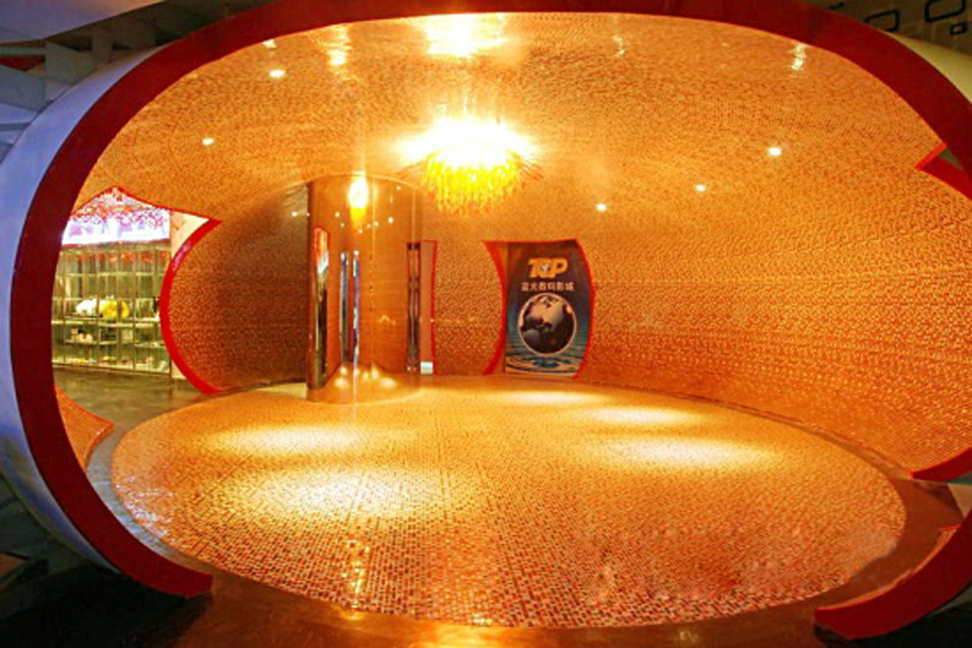?。裕希辛控準剑耍裕质且粋€典型的量販式KTV,其最大特點是色彩艷麗跳躍,風格前衛(wèi)時尚。并采用明亮簡潔的燈光襯托整個空間的時尚健康的氣氛??臻g采用兩個“蛋形”結構進行流線組織,并有“破殼而出,一鳴驚人”之理念,走廊借鑒了“桑丘瑪?shù)蔓惖禄羲?rdquo;常用的折紙手法,使得通道空間充滿著趣味性。