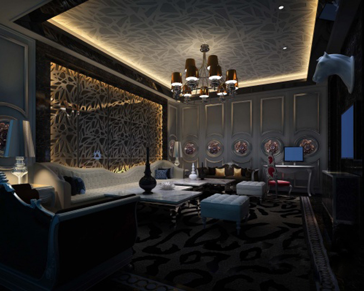 張家港,一個新興港口工業(yè)城市,其到處洋溢著文明與禮貌,是宜居與投資相當(dāng)理想的城市。在設(shè)計之前,我們對地理環(huán)境、人文與娛樂潮流趨勢、消費(fèi)心理、消費(fèi)習(xí)慣,結(jié)合策劃意識、經(jīng)營理念做了大量的分析。我們拋棄了傳統(tǒng)的金碧輝煌,燈光閃耀的空間設(shè)計理念,從設(shè)計上回歸到了肅雅的現(xiàn)代簡歐風(fēng)格,把歐式符號加以夸張與變異,運(yùn)用重復(fù)構(gòu)成和裝飾藝術(shù)的手法,把空間裝扮加軟裝飾的搭配來盡量體現(xiàn)空間的格調(diào),讓玩樂空間在張顯其尊貴的同時也體現(xiàn)了時尚的活力。
