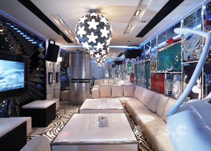 專為派對打造,藍(lán)色調(diào)設(shè)計,除了一般卡拉OK系統(tǒng)外,還配置了最先進(jìn)的互動投影技術(shù)桌球臺,滿足不同人的玩樂要求,動畫效果在球的運行軌跡上蔓延變換,奇幻無比。