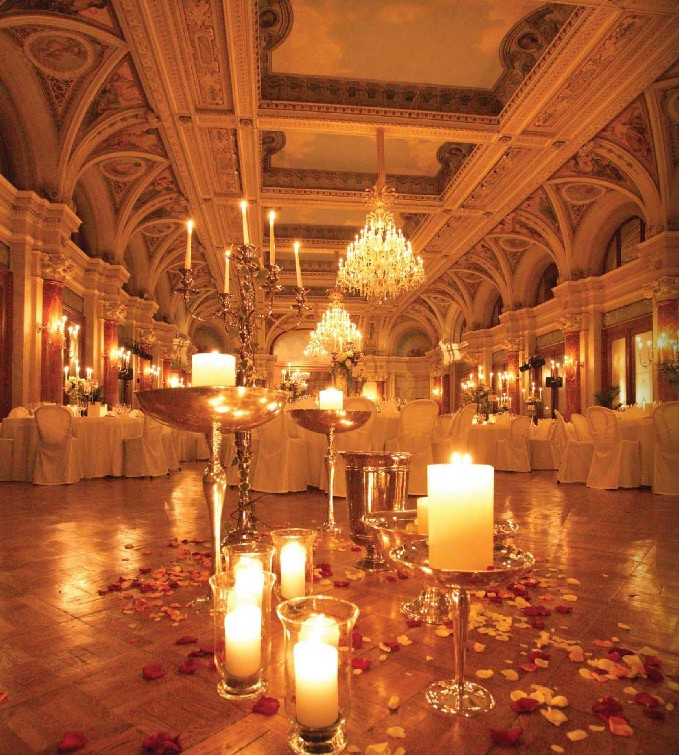 La Terrasse餐廳巨大的水晶吊燈,迷人的燈光、散落的花瓣將人帶入童話般的夢境