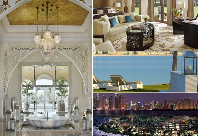 樓頂層的Grand Palm套房(面積270平方米),可盡覽渡假村泳池和私人碼頭風(fēng)光。於面棕櫚島方向,寬450米的私人海灘則規(guī)劃了64間客房、24間套房及4棟私人沙灘別墅(包括3棟面積325米的二房別墅以及一棟面積425平方米 的三房別墅,配置私人恒溫泳池及「阿拉伯」式的私人宴會露臺供家族聚會使用)。同時因基地位於海上,高度隱私 對於低調(diào)中東住客的重要性,而貼心地提供專用碼頭供私人游艇停泊。飯店基地中央位置,面積達850平方米的泳池, 於泳池兩側(cè)擺置偌大的長沙發(fā)供日光浴。其中較為特殊的是位於泳池旁的池畔套房,亦提供私人專用的室內(nèi)外起居空間、娛樂設(shè)施及酒吧與沐浴空間,是專為家族聚會使用的獨特規(guī)劃。