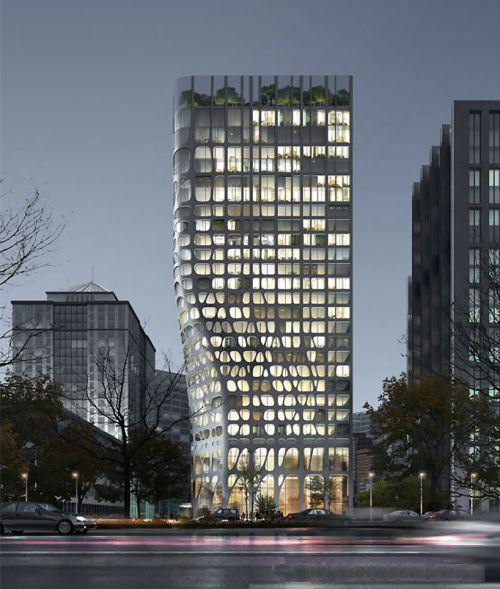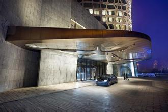 通往宴會(huì)廳的大樓梯也是空間中的一個(gè)亮點(diǎn)。夜晚,扶手上的燈光形 成俊秀飄逸的“之”字形,堪比王羲之的書法:巨大的水晶吊燈造型獨(dú)具匠心,如花朵、如裙裾,層層疊疊,似千堆雪。