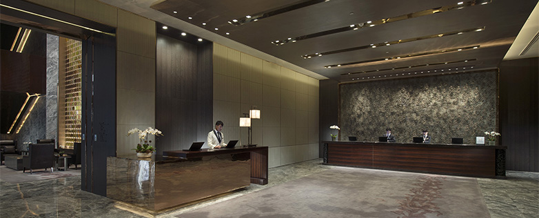 您現(xiàn)在所在的位置:首頁>行業(yè)動(dòng)態(tài)>正文步入酒店,迎面是一個(gè)不大的過廳,通向大堂吧、接待區(qū)以及位于左邊的宴會(huì)廳與中餐廳。每個(gè)部分的空間都不大,但私密感很強(qiáng),住店客人和對(duì)外經(jīng)營的宴會(huì)、中餐有各自分開的出入口。這幾個(gè)區(qū)域 又是貫通的,在裝飾風(fēng)格上協(xié)調(diào)統(tǒng)一。地面和墻面大量運(yùn)用了銀灰色的石材作為整體色調(diào)的基底,紅銅色金屬作為邊飾,勾勒出一幅既穩(wěn)重又雅致的濃墨山水畫。