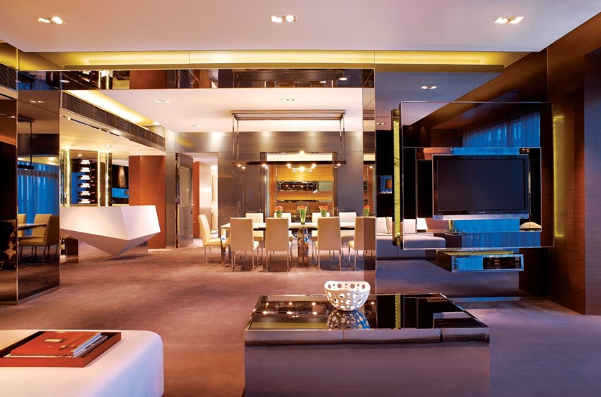 項目的入口大堂,設(shè)置在兩座塔樓之間,與底層各樓層相連接,華麗的空間設(shè)計給予了光臨的客人一個深刻的第一印象及真正的“酒店體驗”.客人在到達(dá)天臺酒吧前須經(jīng)過這一雄偉的入口,它的整個中庭頂部為精巧的鋼結(jié)構(gòu),通過懸掛其上的玻璃屋頂,可以瞥見屋頂天臺。您若乘外部玻璃觀光電梯上升至頂樓,就可俯瞰上海全景。在天臺酒吧,您還可以一邊啜飲馬天尼,一邊觀賞世界上最美的景色之一,燈火通明的外灘、漆黑的黃浦江和浦東鱗次櫛比的高樓大廈。