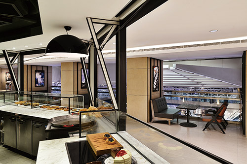 餐廳落點(diǎn)在商場頂層之角落區(qū)域,使用面積局部依鄰回廊并且可俯瞰中庭。本案面對(duì)的首要挑戰(zhàn)是必需像街道般開放,不能中斷百貨商場之動(dòng)線,并且要前後通透鄰接左右。在不能筑墻圍塑獨(dú)立區(qū)塊、雙入口且無明確的動(dòng)線指向等前提下,衍生出餐廳未來可能面臨的問題…