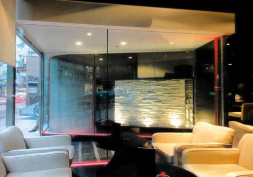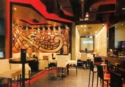 燈光設計本案的一大亮點,也是我們鄭州裝修公司需要去注意學習的。巨型的LED系統(tǒng)帶有16個嵌板投影燈,照亮了一切。從紅色的火焰,到舞者的側影,酒吧里的光學纖維使得酒杯不停地變換色彩,人們的心情也在這變化中變得輕松愉悅。