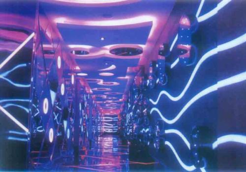 三層吧房,走廊上的線(xiàn)條設(shè)計(jì)成大開(kāi)大合,極盡絢爛、夸張之致,大量高純度色彩的運(yùn)用動(dòng)感十足。鄭州裝修公司哲東裝飾設(shè)計(jì)從事夜場(chǎng)設(shè)計(jì)多年,經(jīng)驗(yàn)豐富,成功案例達(dá)上百個(gè),有需要的請(qǐng)聯(lián)系:0371-88886072。