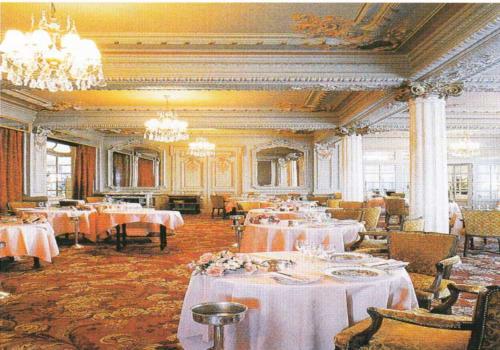 該餐廳為古典歐風(fēng)風(fēng)格,其藻井、柱式、拱窗、吊燈等處理得華麗而又繁簡(jiǎn)得當(dāng),