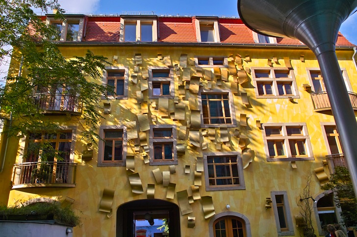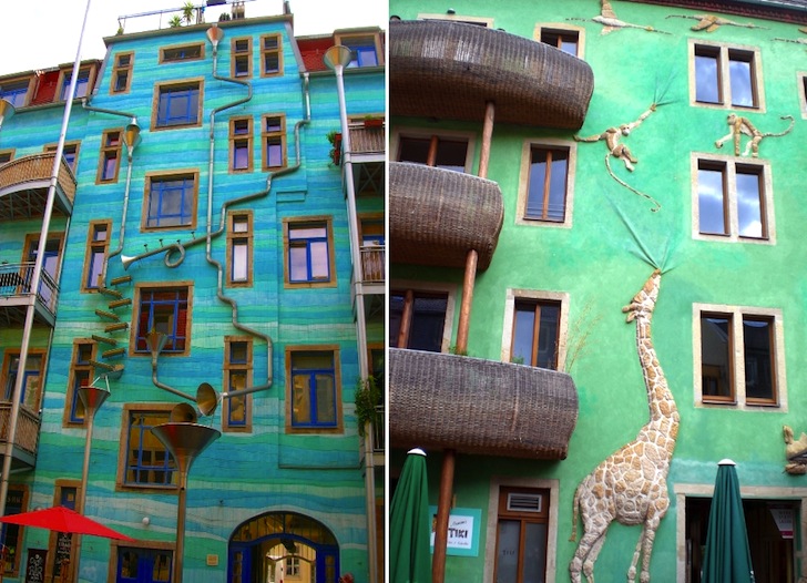 不僅僅是雨水管道,設(shè)計師也善于在建筑的外表面做出各種的花樣造型。德累斯頓作為德國乃至歐洲環(huán)境最好的城市之一,在飽經(jīng)二戰(zhàn)的硝煙之后,德累斯頓可謂是為了恢復(fù)城市的環(huán)境做出了極大的努力,目前的城區(qū)植被覆蓋率為 60%,或許正是因為受到綠色環(huán)境的影響,環(huán)保的綠色觀念也是深入人心,這才使得德累斯頓的建筑也擁有了其特的氣質(zhì)。
