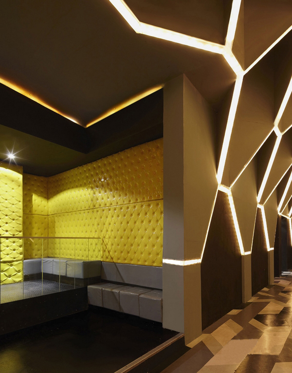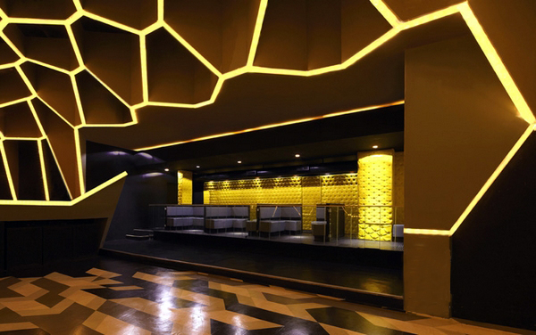 在新加入的設計中,Mafra運用六邊形和三角形作為主力的的框架全力打造了一個奢華娛樂空間。這些多變的造型被運用到屋頂和四周的墻壁之中,配以舒適的家具,給人以別樣感官體驗。此外,其設計的多角度的LED燈光投射,讓客人感覺如夢如幻般的舒適,使客人在陶醉于其中的同時,多了幾分別處沒有的靈魂享受。