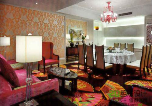 酒店設(shè)計(jì)公司在處理客房包間時(shí)采用粉紅、粉綠等顏色加以區(qū)分,給人以溫暖和富貴的感覺。